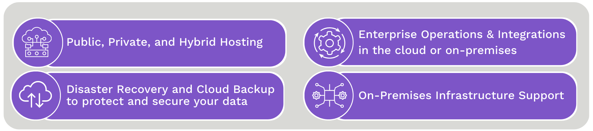 With decades of cloud hosting experience, we can help you select the right cloud platform and manage Infrastructure with the required technical expertise.