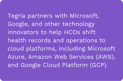 With greater transparency, openness, and actionable data, staff can understand patient demands and align services accordingly. They can start to visualize the connections between community health needs and patterns of behavior in the patient population. They can use predictive analytics to manage supply (provider time, facility capacity) and demand. And patients can have better visibility into overall cost, clinical outcomes, and level of provider satisfaction. This takes the right people, training, support, and tech. Patient self-service tools such as a smooth-running telephony system or patient portal might require telecom and EHR module building expertise, as well as software development and process engineering talent. Making systems interoperable requires engineers with that experience. Needs around development, change management, governance, and accountability may crop up. So have a plan for workforce training and outside support. Tegria partners with Microsoft, Google, and other technology innovators to help HCOs shift health records and operations to cloud platforms, including Microsoft Azure, Amazon Web Services (AWS), and Google Cloud Platform (GCP). Better retention among patients and staff also requires a healthy company culture. Kindness and inclusivity lead to trust and loyalty from the community you serve. Essentials include continuing education, recognition and promotion of great staff, and support for team members to succeed and grow their own careers.