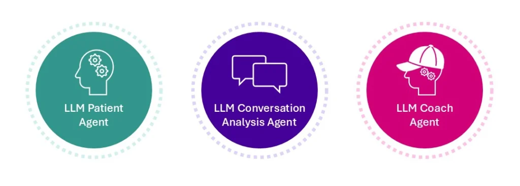 The foundation of the tool is a set of detailed patient personas, each grounded in clinical expertise and designed to reflect emotional nuance. These personas interact with clinicians using natural language responses generated by GPT-4o, Open AI’s LLM. The realism of the interaction is powered by an agentic AI architecture: a multi-agent system that introduces greater depth and adaptability into each conversation.