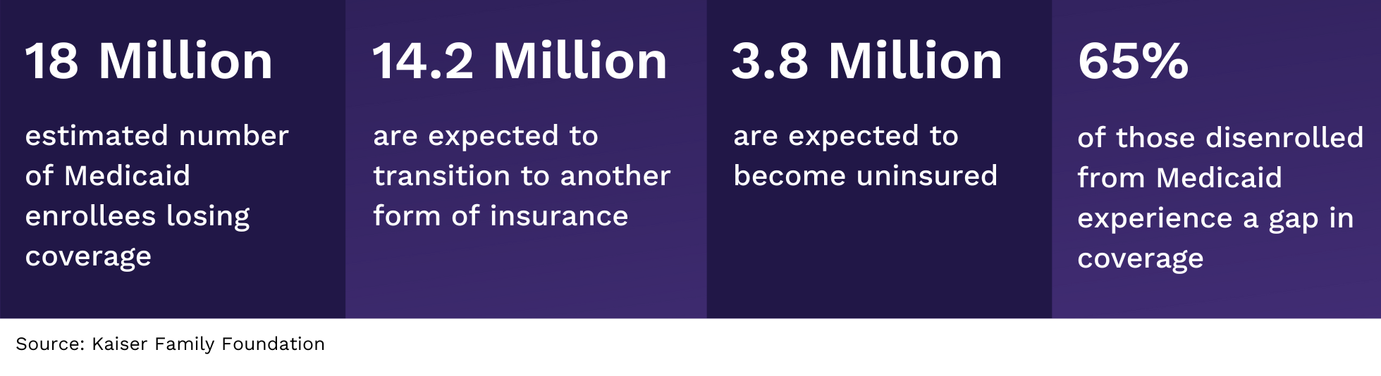 As the result of redetermination activities, an estimated 18 million Medicaid enrollees will lose coverage. Some 14.2 million of these individuals are expected to transition to an alternative form of insurance, and 3.8 million are expected to become uninsured. Along with other new and emerging CMS regulations, this is expected to impact population healthaccess to care, and health plan operations